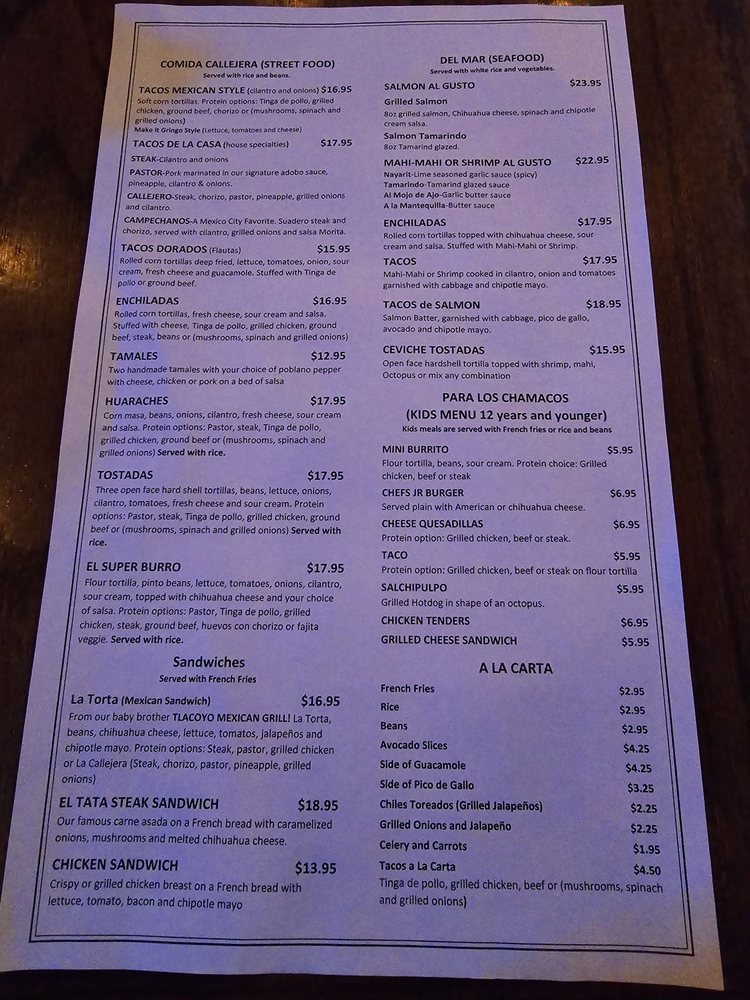 Our Famous Tlacoyos (Grandma's Recipe)2 Handmade Corn Dough Filled with Pinto Beans Topped with, Cilantro, Onions, Cheese, Sour Cream and Green Salsa