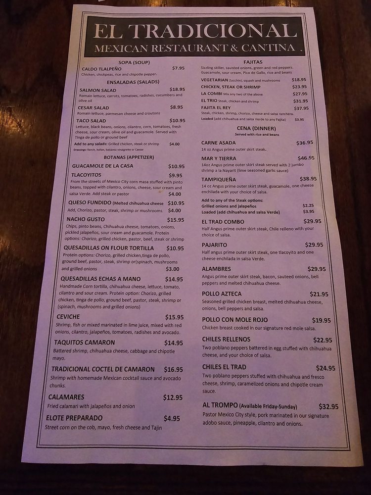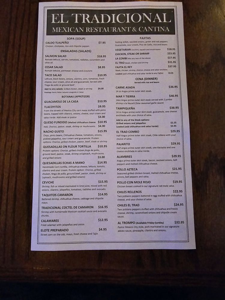 El Tradicional also offers healthful vegetarian options and a delightful kid's menu that ensures everyone leaves satisfied. With a full bar featuring standout drinks like the delicious Cucumber Jalapeño Margarita, and a cozy outdoor patio, El Tradicional is perfect for casual dining, family gatherings, or a sports night out with friends. Experience the friendly service and festive vibe that make this restaurant a beloved favorite!